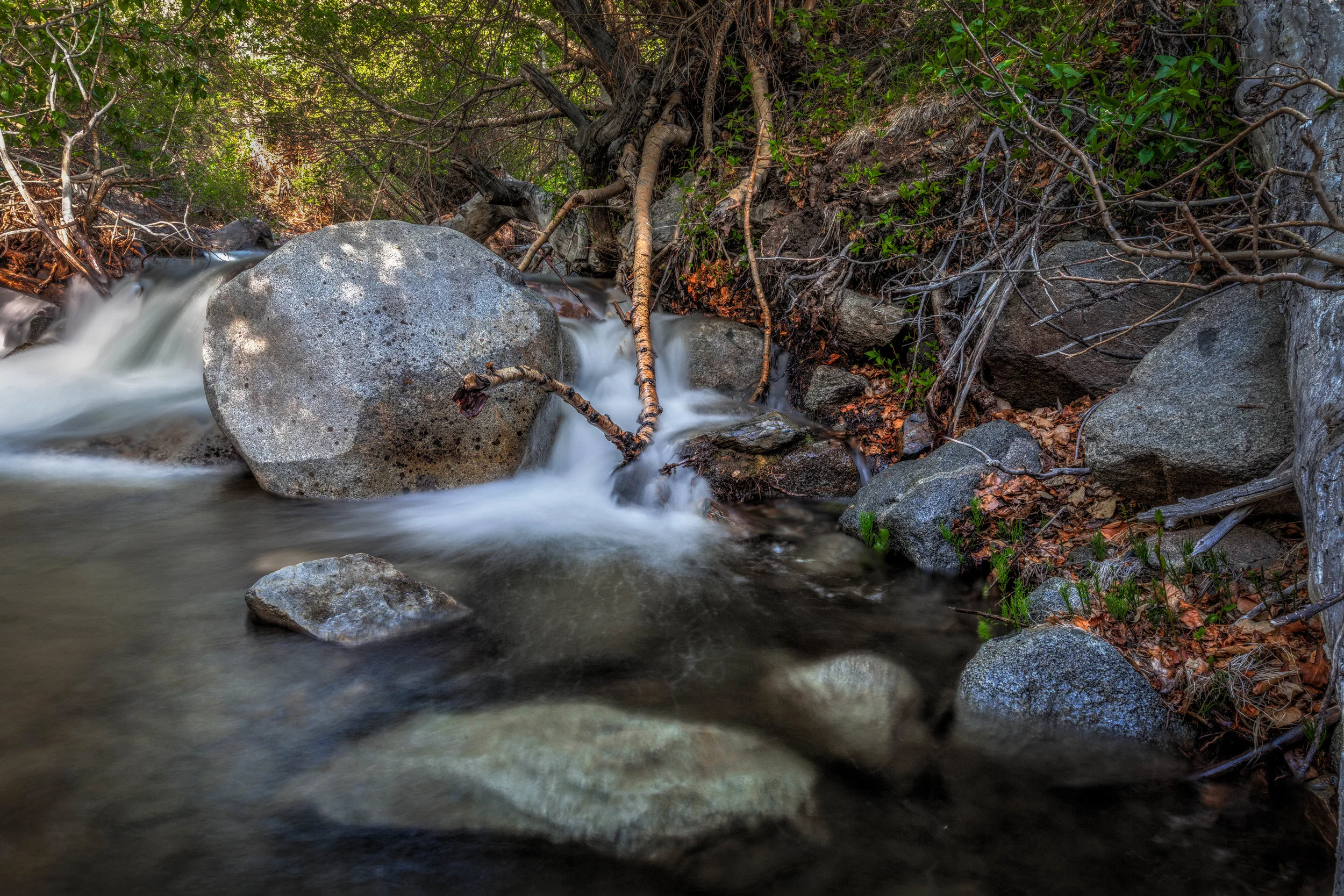 I was not disappointed. There was a small bend in the stream that drop several feet as it turned creating this beautiful cascade. Spent 15-20 minutes taking several shots. There was not a lot of room to maneuver the tripod so the angles I could use to frame the image was limited.