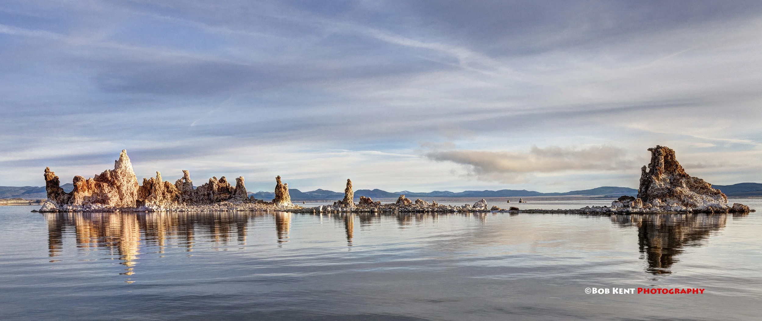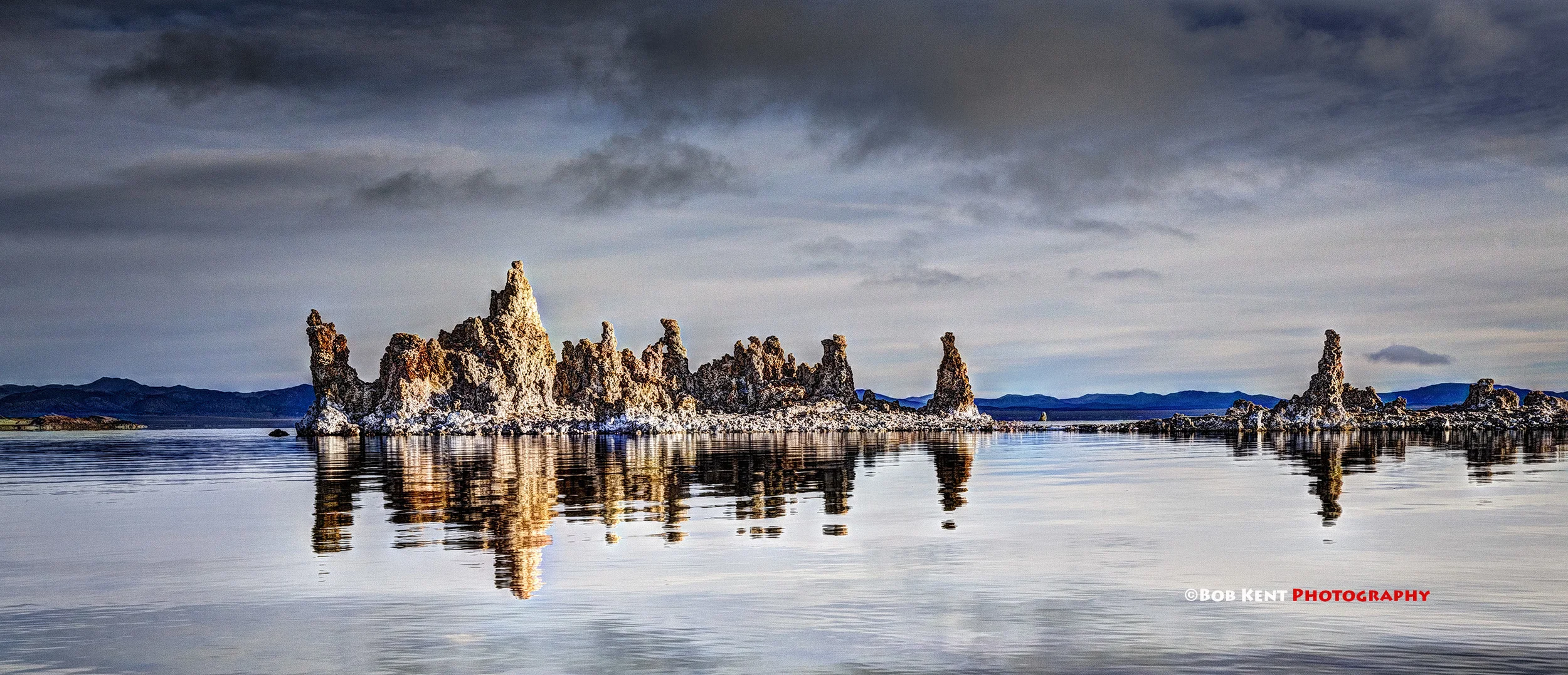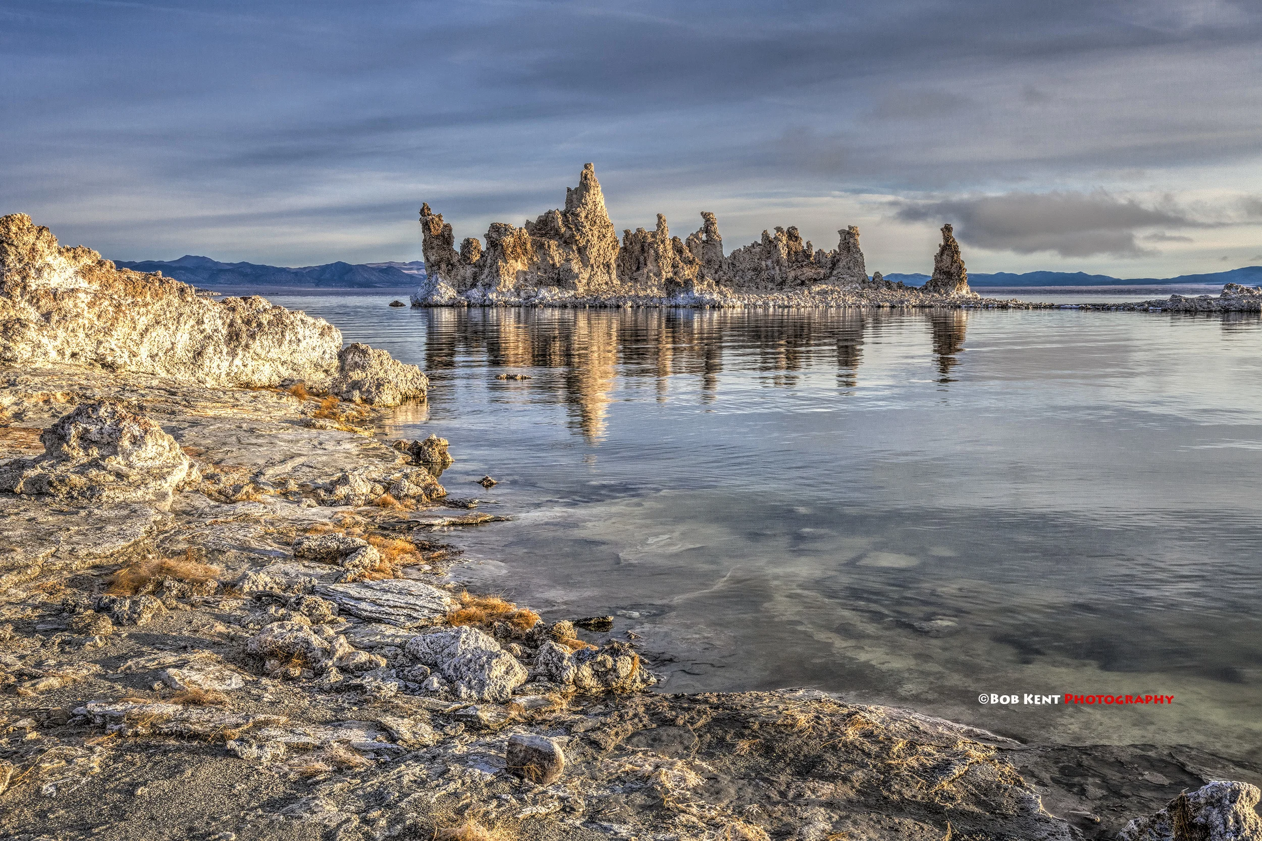 There are countless beautiful photographs of Mono Lake and its Tufas posted on the Web. Personally, I had never captured an image of Mono Lake Tufas that I was totally satisfied with. So on a quest, I got up early on a very cold December morning to explore the South Tufas. It was a brisk 17 degrees when I stepped out of the car. There was frost on the ground and snow patches scattered about from a recent snowstorm. The water was still, but not completely glass as it gets sometimes. As I hiked in and set up the “golden” hour was in full force!