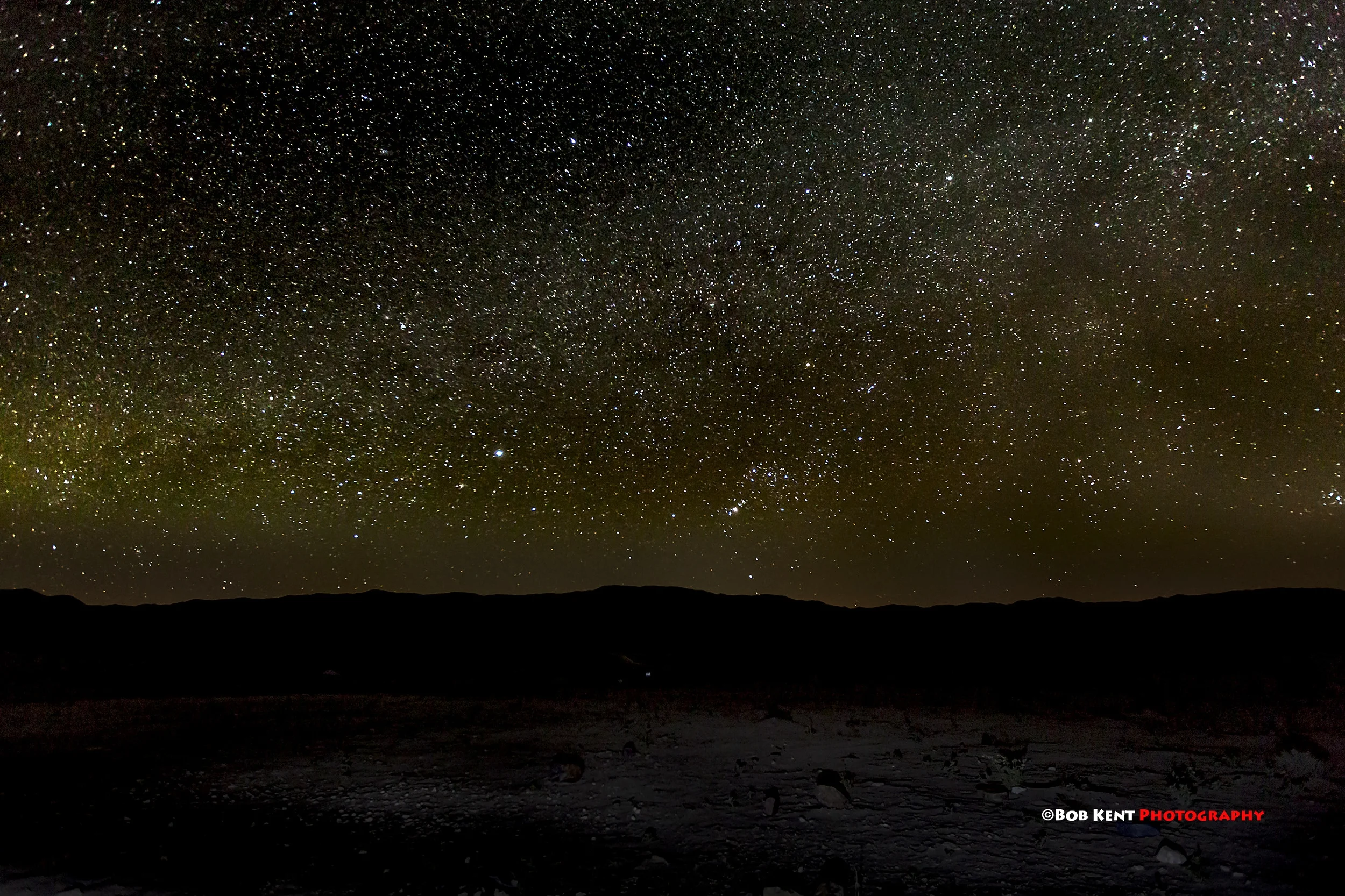 Turns out the turnoff is well marked. The unpaved road was pretty good but there were several miles of bumpy washboards. Reaching the Dunes I pulled into one of the marked campgrounds and stepped out of the car. I was treated to a show that I was not expecting. I explore the Sierra a lot. I have been in some remote areas at night where the stars are awesome. I was not prepared for the stars in Death Valley. It has to be one of the most beautiful scenes I have ever witnessed. So, me being me, I opened a bottle of wine and set up my tripod to try and capture them. The image below does not even come close to what it looked like in person.